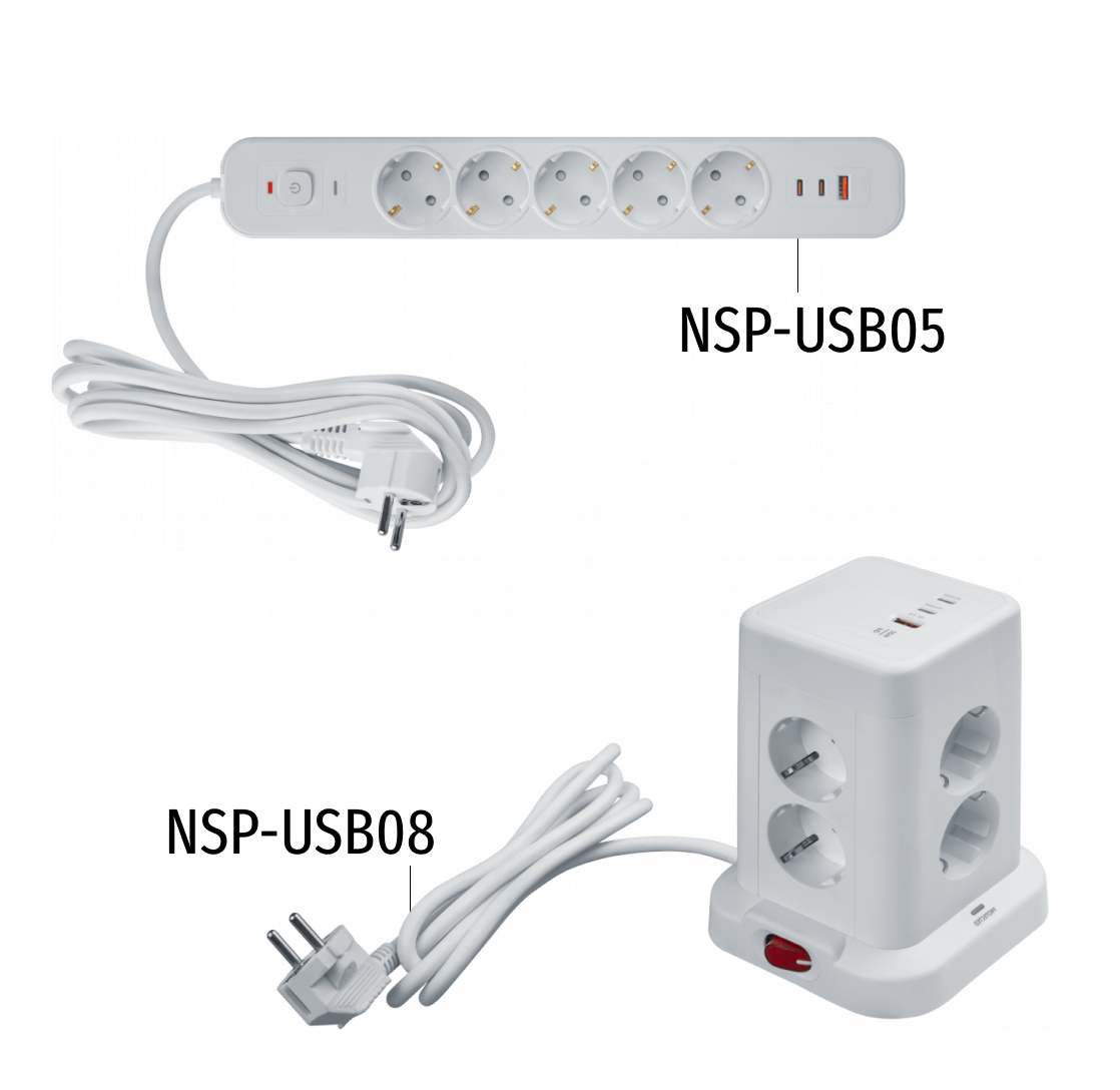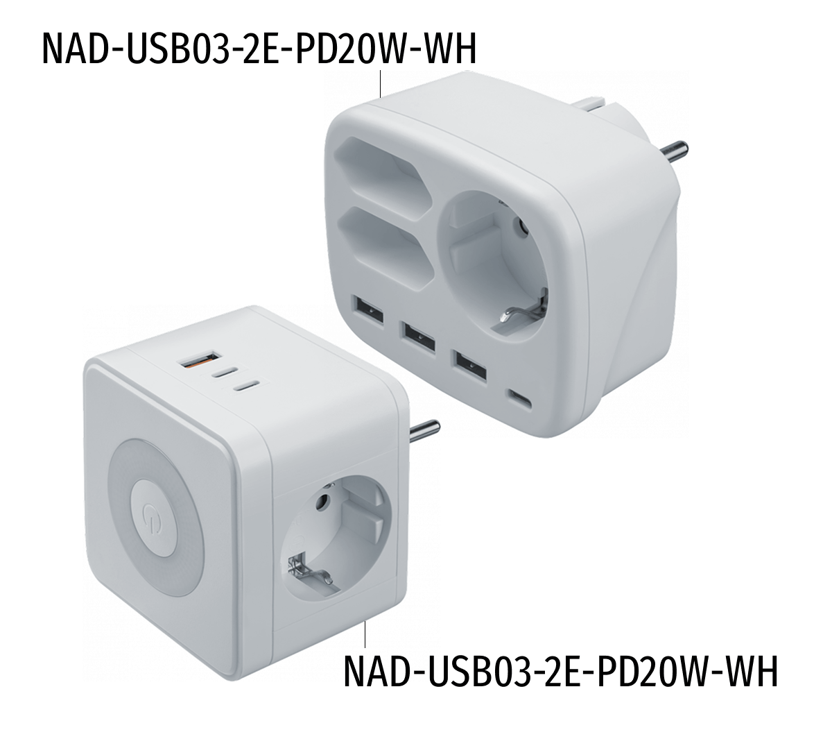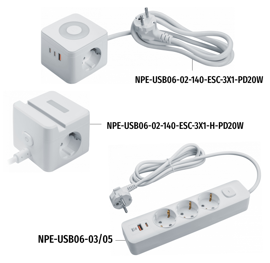 Новинки представлены двумя моделями NAD-USB03-2E-PD20W-WH (поддержка быстрой зарядки PD и QC 3.0) и NAD-USB03-1E-2X-WH.